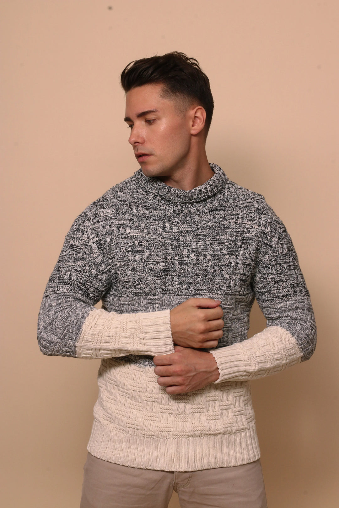 100% Organic Tri Colored Knitted Turtleneck Sweatshirt