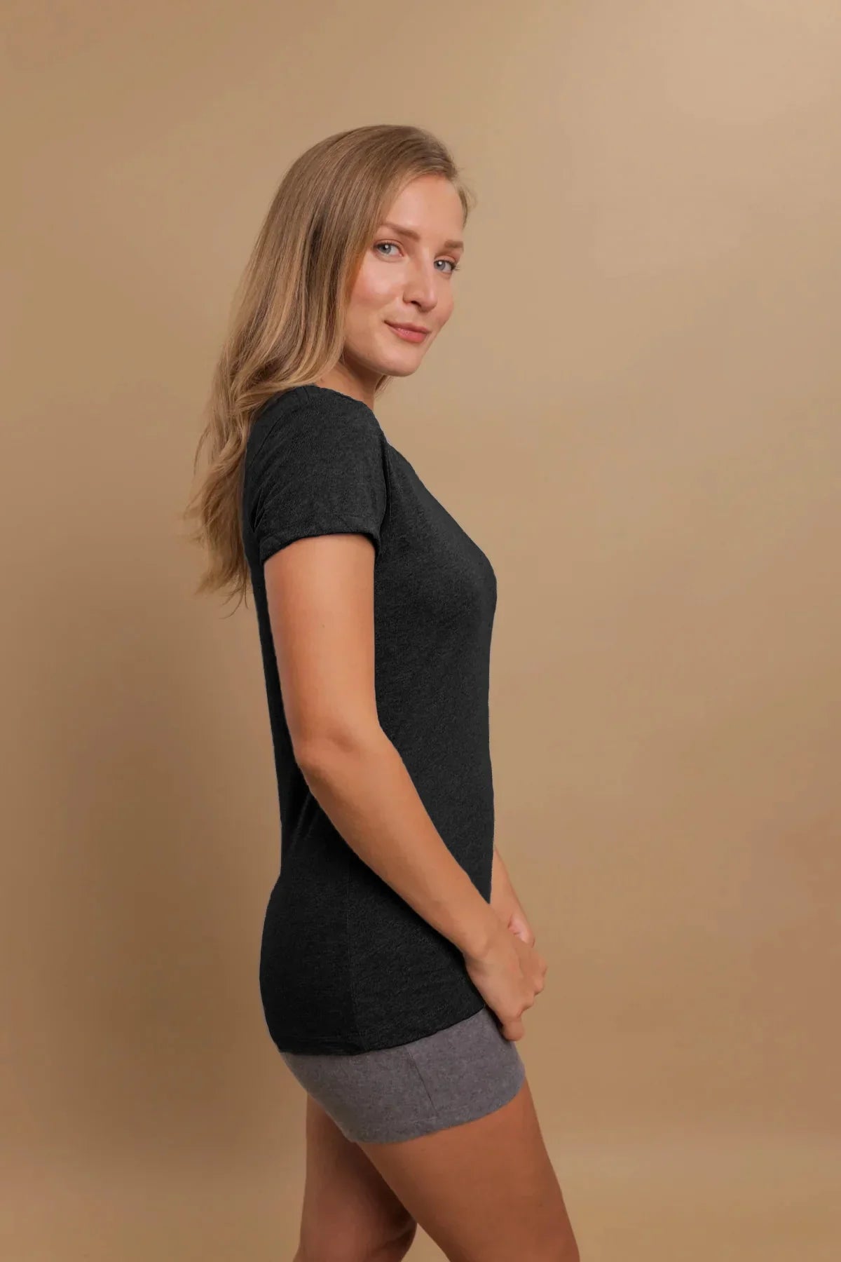 Women's Round Neck Cap Sleeve Shirt