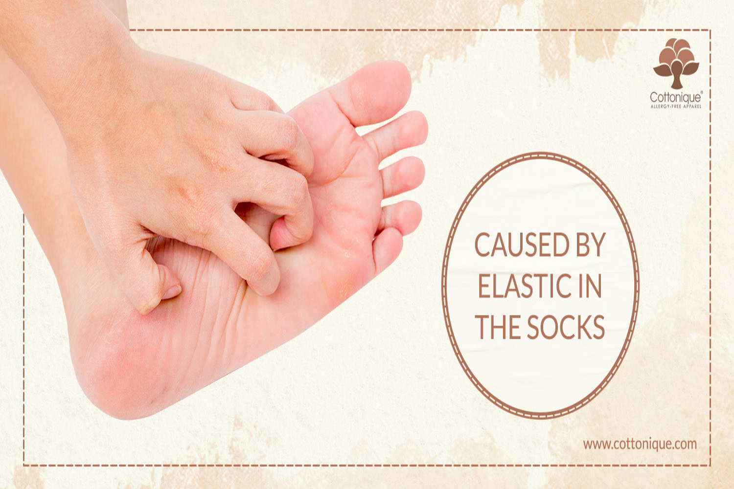 The biggest culprit in causing foot allergies is the elastic used in conventional socks. Spandex and latex contain proteins that your immune system might overreact to, resulting in itchy red splotches and other symptoms.