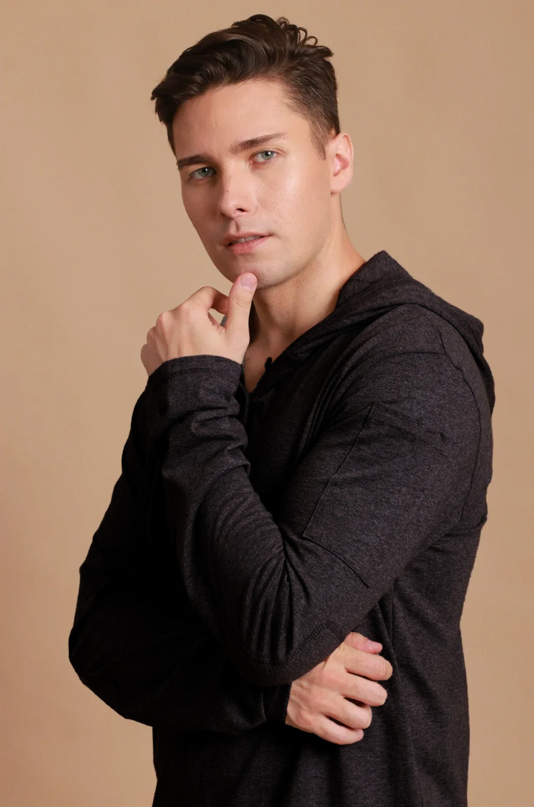 Men's Jersey Pullover Hoodie with Built-in Sleep Eye Mask
